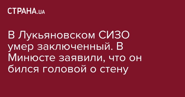 В больнице, 9 апреля, умер 22-летний осужденный, отбывавший наказание в Лукьяновском СИЗО. В Минюсте заявили, что он бился головой о стену.