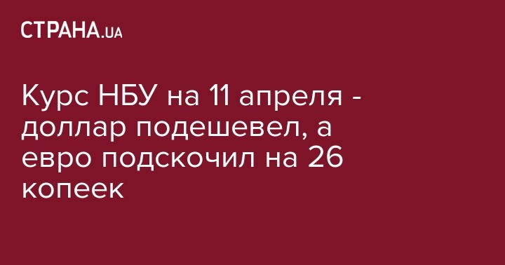Курс НБУ на 11 апреля - доллар подешевел, а евро подскочил на 26 копеек