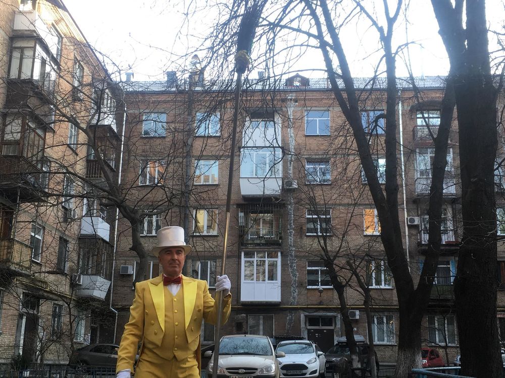 Культовый киевский дворник, который метет улицы во фраке, купил желтый смокинг