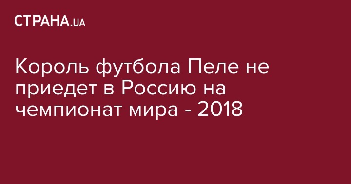 Великий бразильский футболист Пеле, которого называют не иначе как Король футбола, скоеее всего не приедет на ЧМ-2018 в Россию из-за серьезных проблем со здоровьем.