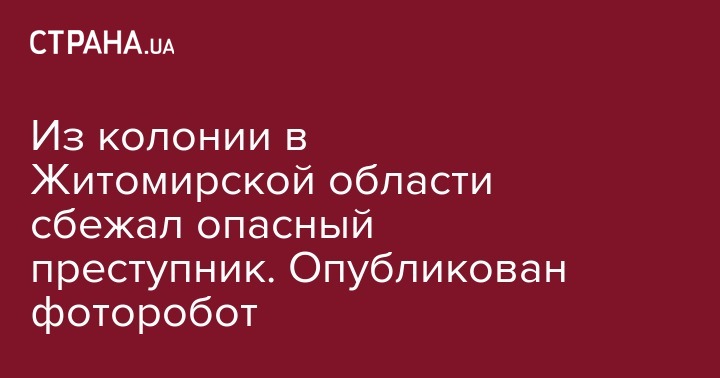 Из колонии в Житомирской области сбежал опасный преступник. Опубликован фоторобот