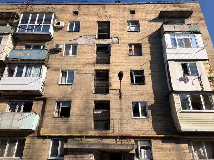 Местная "администрация" опубликовала фото повреждений домов в Куйбышевском районе Донецка.