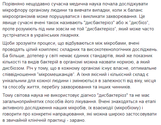 Сравнительно недавно современная медицинская наука начала исследовать микрофлору организма человека и изучать случаи, когда же баланс микроорганизмов может нарушаться и вызвать заболевание. Это явление современные ученые также называют "дисбактериоз" или "дисбиоз", однако понимают под ним совсем не тот "дисбактериоз", который может часто встречаться в украинских больницах.