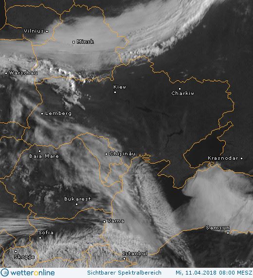 Синоптик Наталья Диденко показала движения в Украину нового атмосферного фронта на фото с спутника и на прогностической карте на 12 апреля.