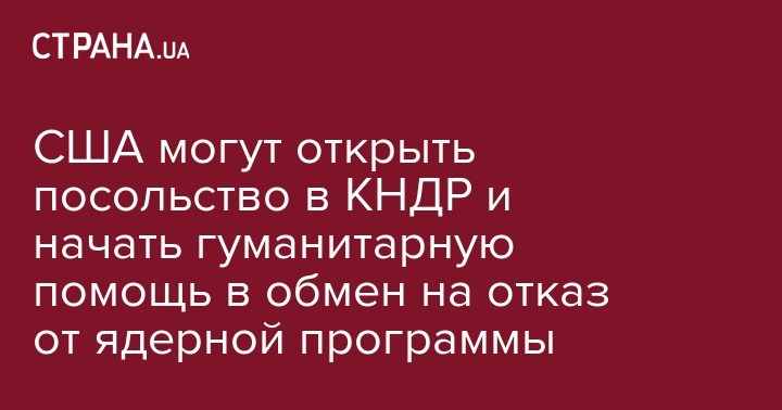 Администрация Дональда Трампа рассматривает возможность открытия посольства в КНДР и предоставления гуманитарной помощи, если Пхеньян откажется от ядерной программы.