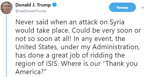 "Где наше "Спасибо, Америка"?", - написал американский лидер.