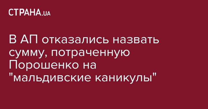 Администрация Президента не захотела уточнить сумму, израсходованную президентом Петром Порошенко на его отдых на Мальдивах.