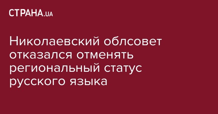 Депутаты Николаевского областного совета отказались отменять региональный статус русского языка. Голосование за отмену статуса русского языка было провалено на внеочередной сессии Николаевского облсовета, передает местное издание "Новости N".