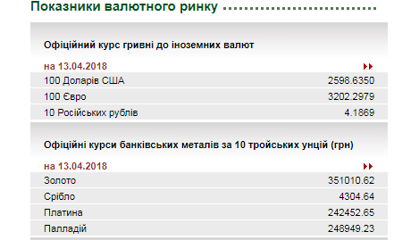 На пятницу, 13 апреля 2018 года Национальный банк Украины (НБУ) ослабил курс гривны до 25,98 за $1. По сравнению с четвергом, доллар США подорожал на 6 копеек.