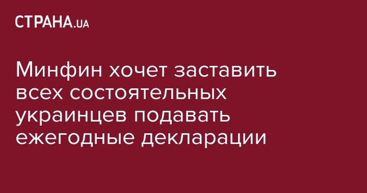 Чиновники Министерства финансов Украины предложили обязать состоятельных украинцев ежегодно представлять декларации об имущественном состоянии и доходах (налоговые декларации). Их планируется вести в отдельном учете.