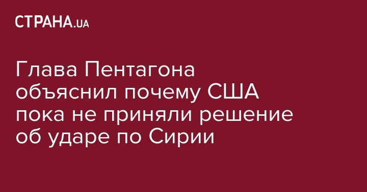 Глава Пентагона объяснил почему США пока не приняли решение об ударе по Сирии