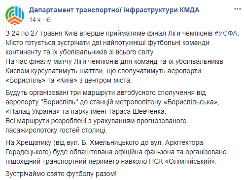 На время финала Лиги чемпионов в Киеве перекроют Крещатик и оборудуют там фан-зоны