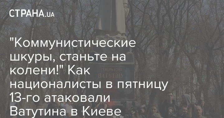 В Киеве националисты открыто осквернили памятник Николаю Ватутину – генералу, который освобождал Киев от нацистов. Они пришли к нему, чтобы сорвать возложение цветов, которое приурочено к очередной годовщине смерти Ватутина. Он погиб 15 апреля 1944 года после ранения в Ровенской области от пули диверсионной группы УПА.