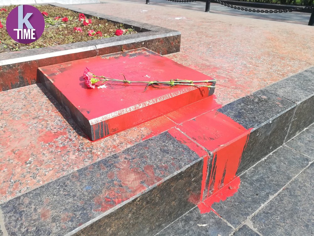 С собой у националистов была краска и громкоговорители. Они сходу облили красной краской памятник, мемориальную табличку у его подножия и наклеили на него "благодарственную" надпись УПА за ликвидацию Ватутина.