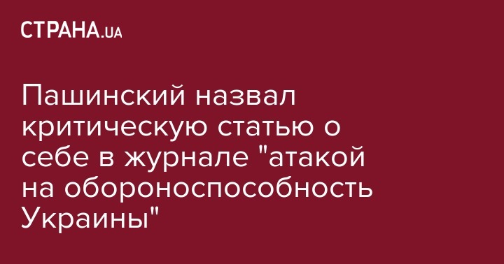 Нардеп Сергей Пашинский ("Народный фронт"), который стал фигурантом нового коррупционного скандала, заявил, что расценивает критический материал в отношении него в журнале - как атаку на обороноспособность Украины и военно-промышленный комплекс в целом.