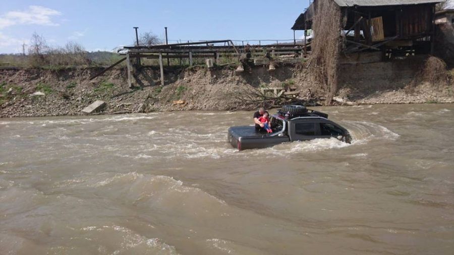 Отец и сын спасались на крыше внедорожника посреди бурной реки на Закарпатье