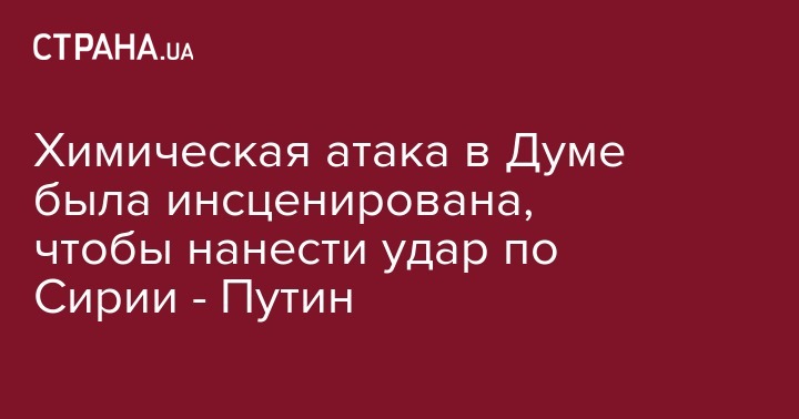 Президент России Владимир Путин заявил, что применение отравляющих веществ против гражданского населения было инсценировано, чтобы нанести удар по Сирии. Об этом говорится в заявлении Кремля.