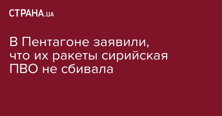 Комментируя ночной ракетный удар по территории Сирии, который осуществили силы США, Франции и Великобритании, в Пентагоне заявили, что ни одна из выпущенных американских ракет не была сбита сирийским ПРО.