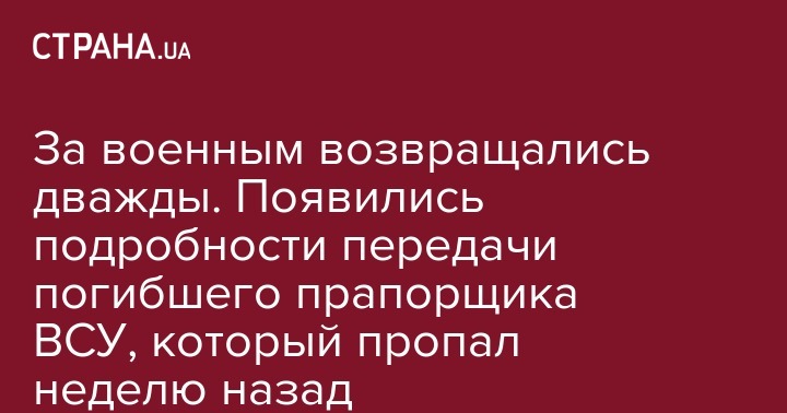 За военным возвращались дважды. Появились подробности передачи погибшего прапорщика ВСУ, который пропал неделю назад