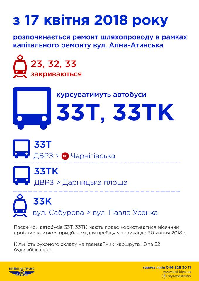 Вместо них на этот период запустят временные автобусные маршруты 33т и 33тк. Автобус 33т будет курсировать от ДВРЗ до станции метро "Черниговская".