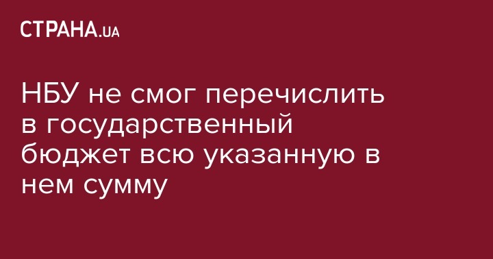 НБУ не смог перечислить в государственный бюджет всю указанную в нем сумму