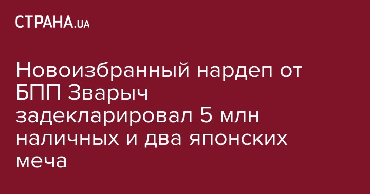 Роман Зварыч, прошедший в Верховную Раду вместо Валерия Пацкана, избранного главой счетной палаты, - задекларировал 149,5 тыс. гривен доходов за 2017 год и два японских коллекционных меча (катана).