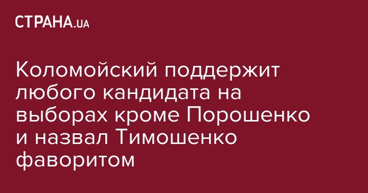 Олигарх Игорь Коломойский, совладелец группы "Приват" и телеканала 1+1 поддержит на будущих выборах президента Украины любого достойного кандидата, кроме нынешнего президента Петра Порошенко. Фаворитом гонки он читает лидера "Батькивщины" Юлию Тимошенко.