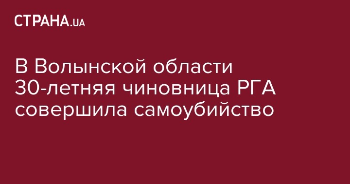 В Волынской области 30-летняя чиновница РГА совершила самоубийство