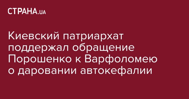 Украинская православная церковь Киевского патриархата (КП) поддержала намерение президента Петра Порошенко обратиться к Вселенскому патриарху Варфоломею с призывом разрешить создание единой поместной Православной церкви в Украине.