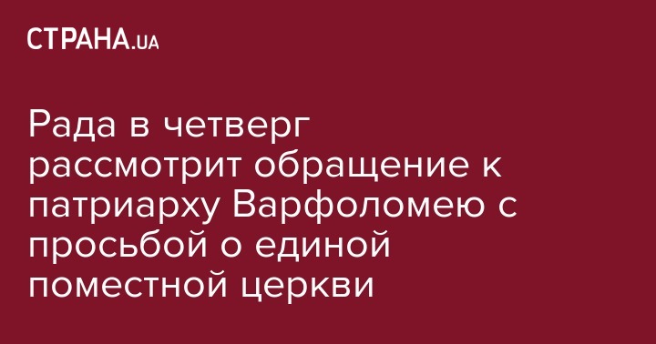 Рада в четверг рассмотрит обращение к патриарху Варфоломею с просьбой о единой поместной церкви