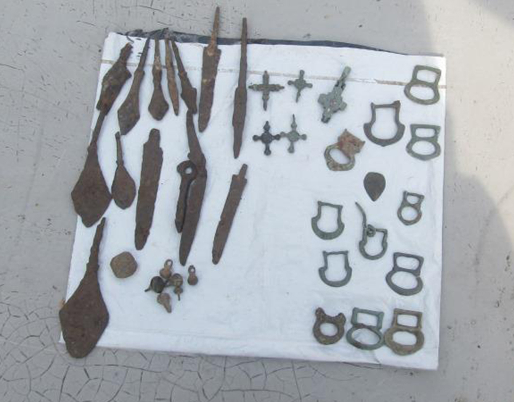 "В ходе осмотра, в рюкзаке водителя, 51-летнего гражданина Украины, выявлено значительное количество предметов старины. Среди обнаруженного - 14 наконечников к стрелам и копьям, 12 пряжек, 5 крестиков, 6 пуговиц и один элемент кольца. Все предметы ориентировочно датируются XIV - ХV веками", - говорится в опубликованном сообщении.