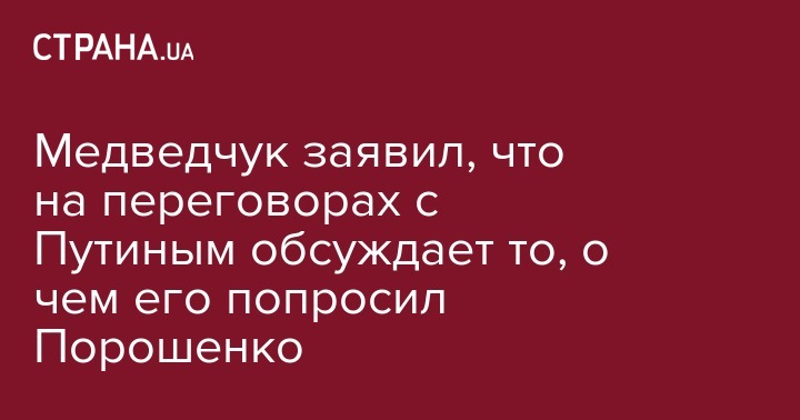 Лидер общественного движения "Украинский выбор - право народа" Виктор Медведчук сообщил, что на переговорах с Владимиром Путиным обсуждает вопросы, о которых его попросил Петр Порошенко.