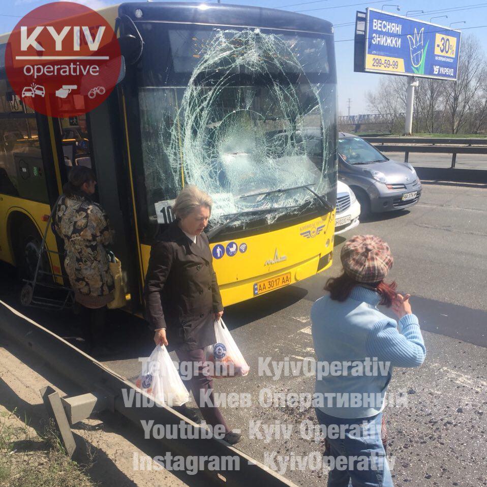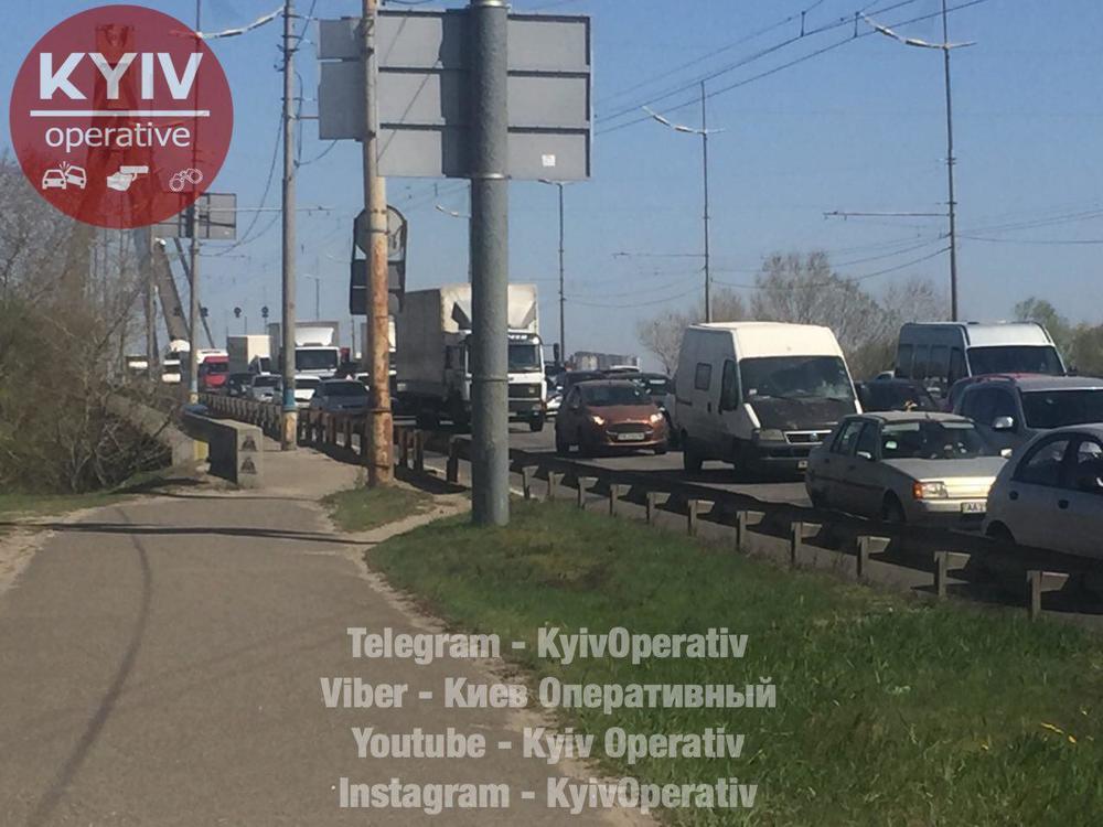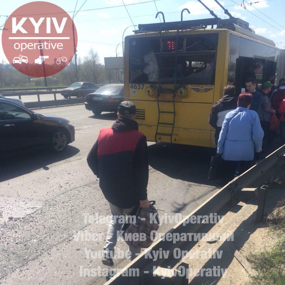 На Северном мосту в Киеве автобус "догнал" троллейбус и образовалась пробка