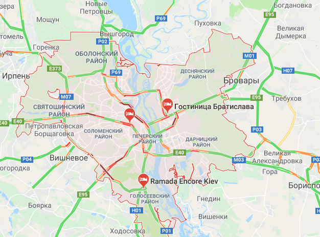 Движение автотранспорта затруднено в центральной части Киева, особенно в районе станций метро "Дружбы народов", "Лыбидская", "Дворец Украина", "Олимпийская", "Университет", "Театральная", "Золотые ворота", "Кловская", "Майдан Незалежности", "Крещатик", "Контрактовая площадь", "Почтовая площадь" и другие.