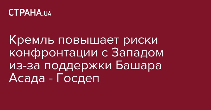 Кремль повышает риски конфронтации с Западом из-за поддержки Башара Асада - Госдеп