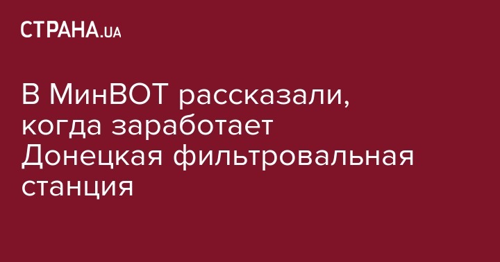 В МинВОТ рассказали, когда заработает Донецкая фильтровальная станция