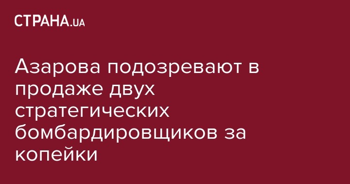 Военная прокуратура объявила николаю Азарову бывшему премьер-министру Украины о подозрении за отчуждение двух стратегических бомбардировщиков, проданные за 2 млн грн, заявил замгенерального прокурора Украины - главный военный прокурор Анатолий Матиос, передает "УНН".