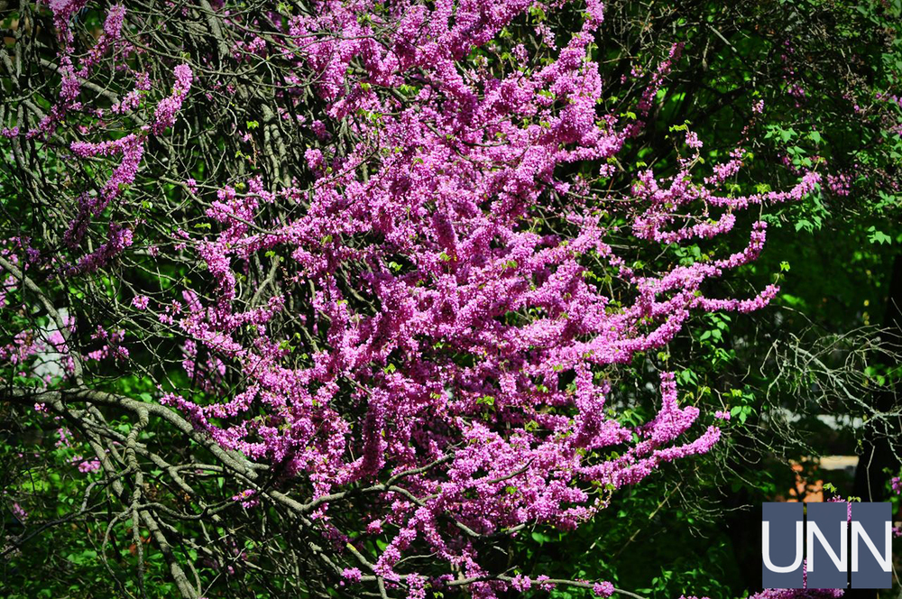 Растение с цветущими розовыми ветвями можно встретить в разных уголках города: в парках, скверах, на улицах и транспортных кругах. Иудино дерево, или Церцис китайский, можно увидеть издалека, ведь сейчас его крона, ветви или даже ствол сплошь покрытые тысячами пышных соцветий розового, сиреневого и фиолетового цветов. Листья же на растении почти полностью отсутствует.