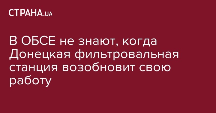 В ОБСЕ не знают, когда Донецкая фильтровальная станция возобновит свою работу