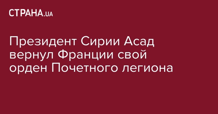 После того как Франция начала процедуру отзыва ордена Почетного легиона у сирийского президента Башара Асада, последний сыграл на опережение и вернул Парижу почетную награду.