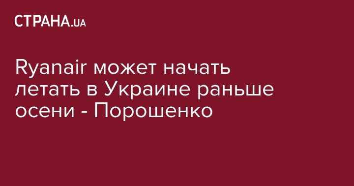 Ryanair может начать летать в Украине раньше осени - Порошенко