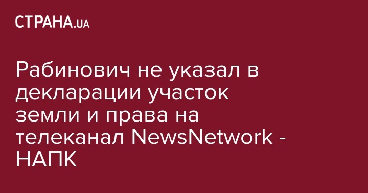 Рабинович не указал в декларации участок земли и права на телеканал NewsNetwork - НАПК