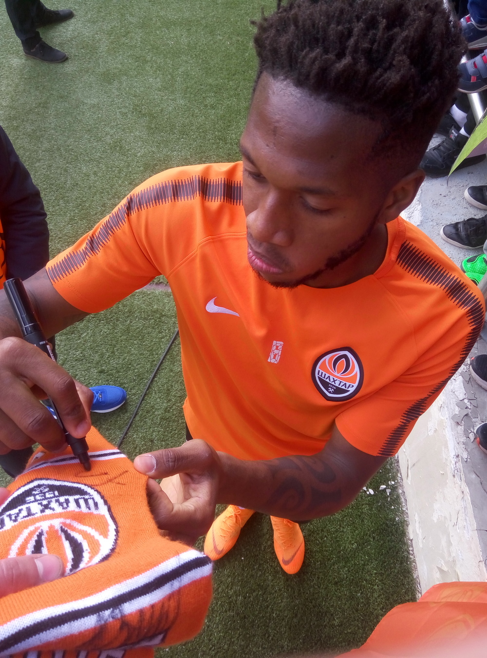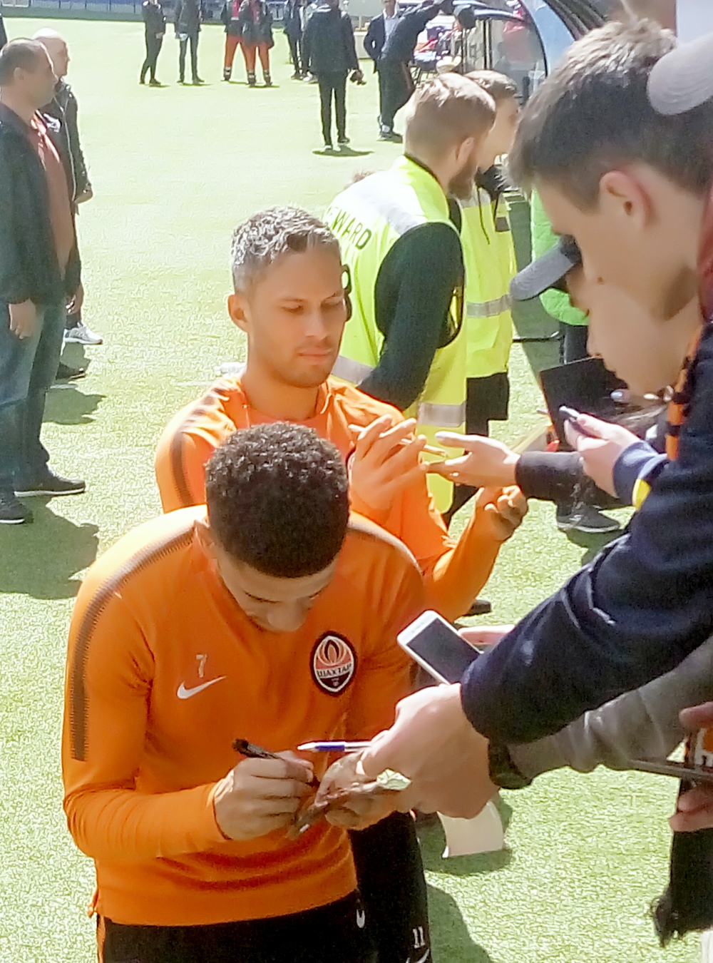 Особую радость от общения с болельщиками выказывал молодой бразильский новичок "Шахтера" - Додо.