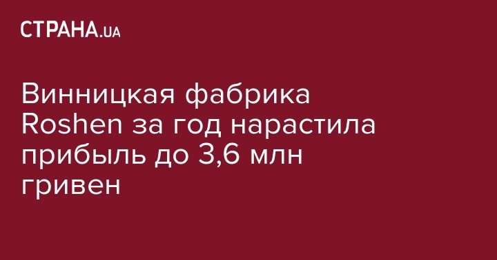 Входящая в корпорацию Roshen Винницкая кондитерская фабрика за год увеличила чистую прибыль на 21%, или на 0,6 млн гривен до 3,595 млн гривен по сравнению с 2016 годом.