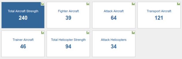 В рейтинге указываетя, что у Украины есть истребители, штурмовики, бомбардировщики, транспортные, учебно-тренировочные самолеты и вертолеты.