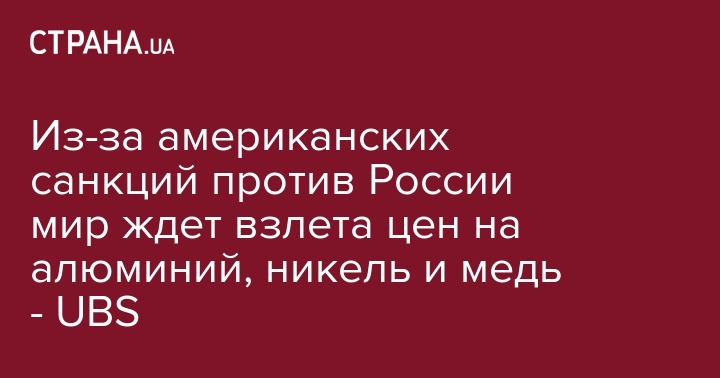 Из-за американских санкций против России мир ждет взлета цен на алюминий, никель и медь - UBS