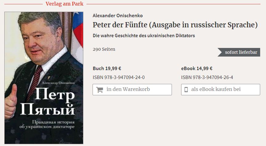 Книги о Петре Порошенко под названием "Петр Пятый. Правдивая история об украинском диктаторе", которую издал беглый нардеп Александр Онищенко, уже доступна к заказу на немецком и русском языках.