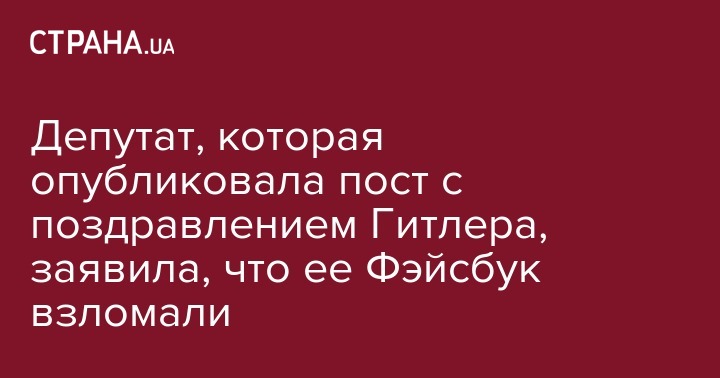 Депутат, которая опубликовала пост с поздравлением Гитлера, заявила, что ее Фэйсбук взломали
