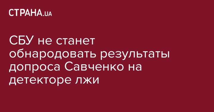 Служба безопасности не намерена обнародовать результаты судебно-психологической экспертизы с применением полиграфа внефракционного депутата Верховной Рады Надежды Савченко. Об этом сообщил источник в СБУ, пердают "Украинские новости".