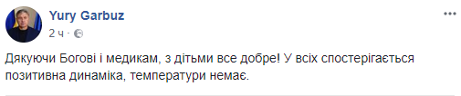 "Благодаря Богу и медикам, с детьми все хорошо! У всех наблюдается положительная динамика, температуры нет", - отметил чиновник.